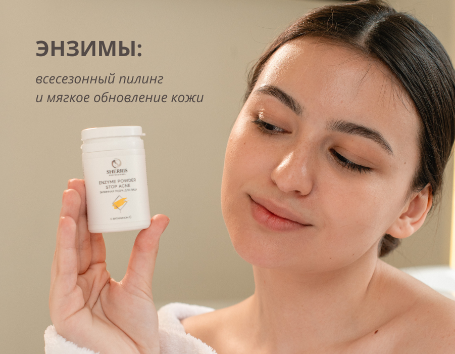 Пожалуй, энзимное умывание – это один из самых безопасных вариантов очищения кожи. Делать такой пилинг можно даже летом. Более того – необходимо, поскольку в летнее время кожа пересыхает, кератиновый слой утолщается, сальные протоки забиваются, мы часто потеем. Энзимная пудра здесь незаменима, поскольку действует безопасно для кожи, не затрагивая здоровые клетки. Кроме того, ее можно применять даже в том случае, если вам временно противопоказаны химические пилинги.