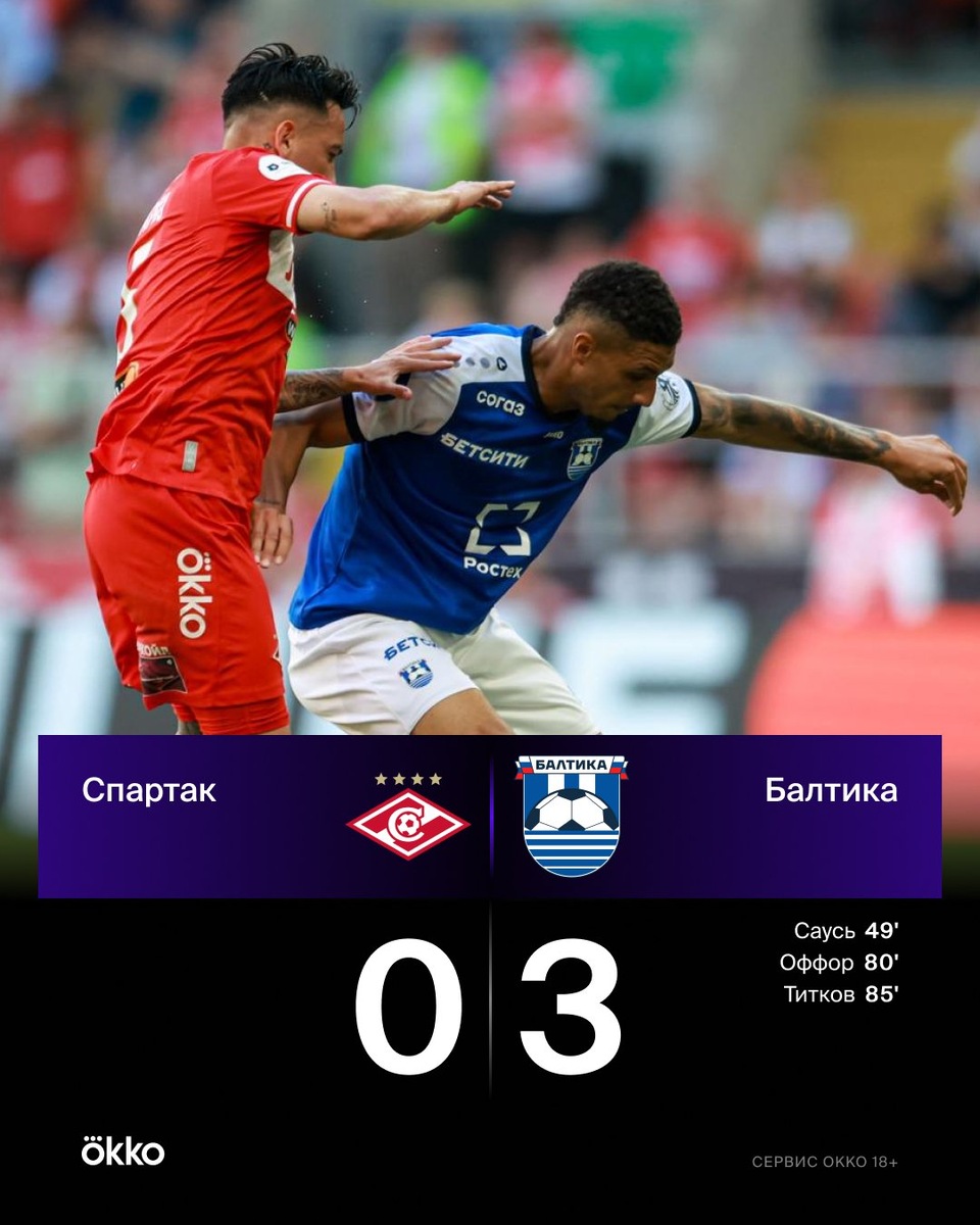 Провальный матч «Спартака» уже во втором туре. «Балтика» разгромила москвичей 😱