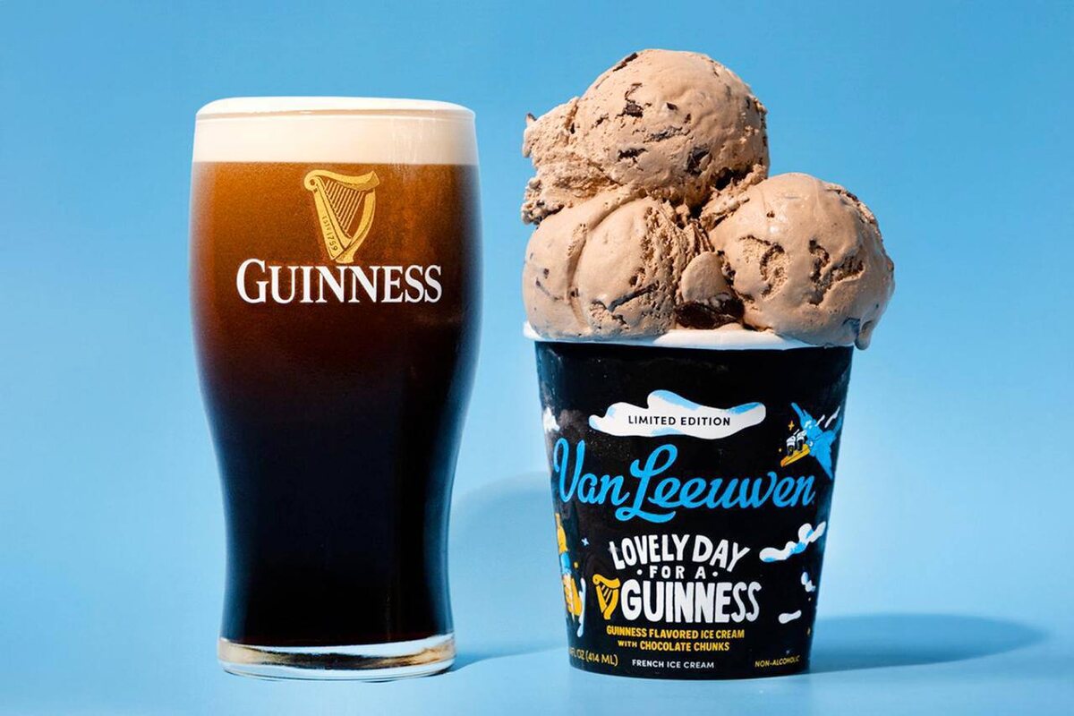 О, Guinness выкатил морожку со вкусом пива. Десерт — лимитка, со вкусом ирландского стаута с шоколадом. Цена — 12 баксов (950 рублей).