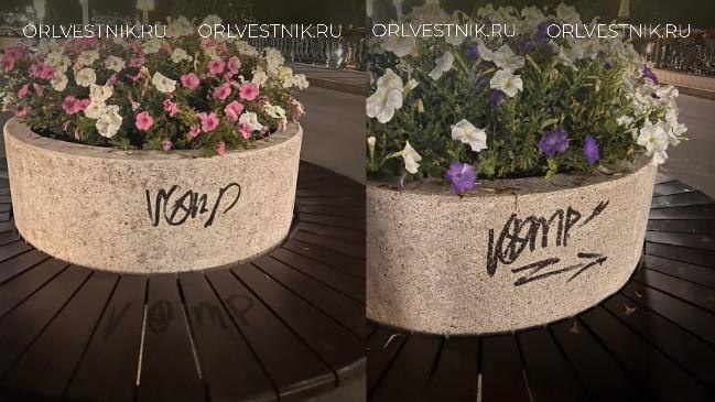 В Орле «художники» добрались до вазонов на Александровском мосту
