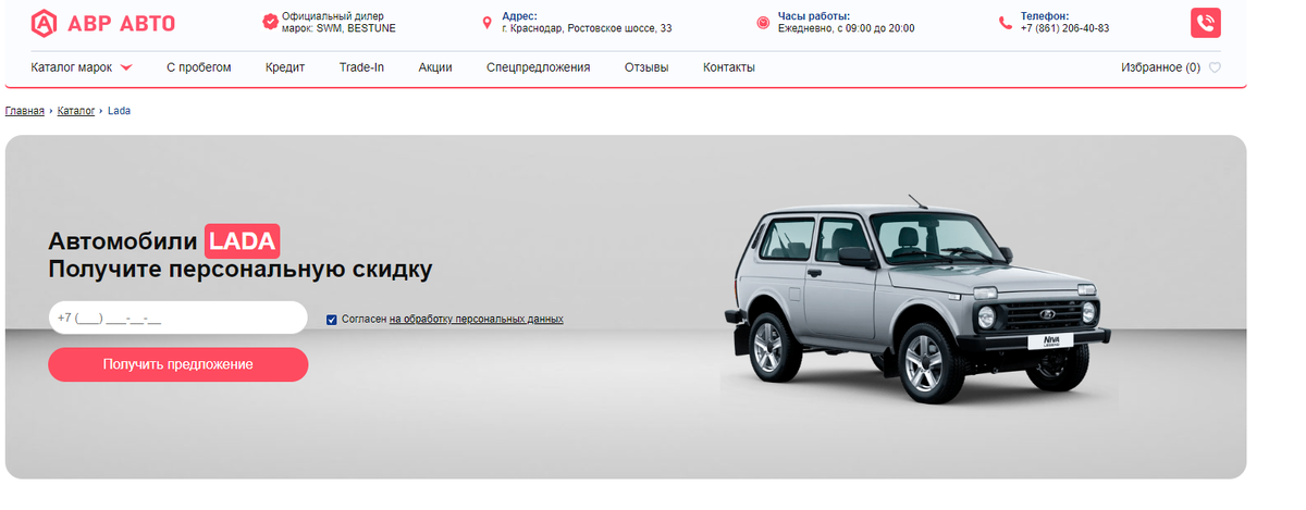 В автосалоне на Ростовском шоссе 33 в Краснодаре можно купить новый или подержанный автомобиль. В этот раз нам попалась реклама дилера с названием АВР Авто. В прошлый раз по тому же адресу рекламировались Авторитэйл и AG KRASNODAR. Оба дилера есть в нашем черном списке. Как на самом деле называется дилерский центр — большой вопрос. Но такая неразбериха с неймингом — это уже большой красный флаг. В совокупности с нереалистично низкими ценами — тем более.