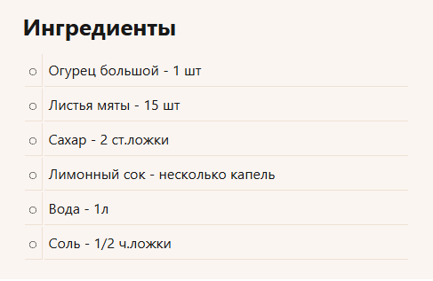 Выкладываем мяту, огурец, сахар, соль и конечно выдавливаем сок из лимона. Проще это будет сделать, если лимон в разных местах проткнуть ножом, так сока будет намного больше. Шаг 3 Шаг3: Всё хорошенько измельчаем. Шаг 4 Шаг4: После достаём эту массу, выкладываем в сито и процеживаем в кувшин. Потом уже добавляем холодную воду. Шаг 5 Шаг5: Берём красивые стаканы. На дно кидаем несколько кубиков льда, заливаем напитком. Для украшения можно положить кружки лимона, огурца и, конечно, же веточку мяты. Наслаждаемся и охлаждаемся