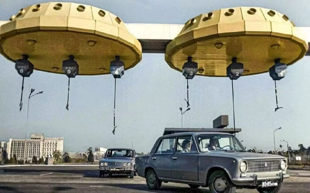 В 80-е годы, когда СССР активно соревновался с Западом в области космических технологий, в стране начали появляться необычные конструкции автозаправочных станций, которые получили неофициальное название «инопланетные» заправки. Эти АЗС были не просто функциональными, но и отражали дух времени, а также стремление стать номером один на Земле. Одной из главных особенностей таких заправок было их уникальное устройство. Шланги для заправки автомобилей располагались в подвешенном состоянии, это позволяло избежать всевозможных неудобств, которые связаны с расположением лючка бензобака. Это означало, что водителям не приходилось беспокоиться о том, с какой стороны находится бак — заправочный пистолет мог быть опущен с любой стороны, что значительно упрощало процесс заправки. Конструкция «летающей тарелки», откуда спускался пистолет, выглядела футуристично и привлекала внимание прохожих и водителей. Это было время, когда люди мечтали о будущем, полном технологий и удобства, не подозревая, что о