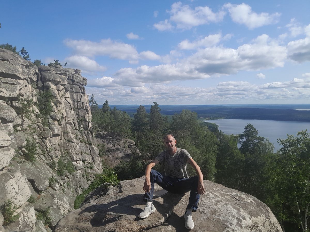 В 4-х километрах от поселка Аракуль расположены скалы Аракульский Шихан, протяженностью около 2км. гранитный скальный массив Среднего Урала, самый южный и самый высокий. Высота горы над уровнем моря составляет 563 м, над уровнем озера — 262 м. Гора является одной из главных туристических достопримечательностей Среднего Урала. Итак, про то, как добраться и разместиться я написал в предыдущей статье. Теперь перейдем к главным красотам. Поутру 16 июля мы рванули на Шихан. Ну, любим мы потрекинговать и полазить по скалам-пещерам. Улица Береговая поселка Аракуль перетекает в экологическую тропу, по которой ходу 4 км. Сначала дорога пологая, идет вдоль озера, с местами для стоянки с палатками. Выходит на берег озера, где стояли отдыхающие на машинах. Значит дорога есть и можно проехать к берегу. Дальше много укромных мест для рыбаков и купания. Вода здесь прозрачная, красота. Потом дорога от озера начинает набирать высоту, как-никак а 262 метра вверх надо набирать же. Сбиться невозможно. Тол