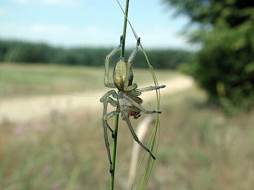 На лугу пасется кто? Правильно, коровы. Про это даже детская песенка есть. Но куда полезнее было бы придумать какую-нибудь композицию о том, кто на лугах охотится. На открытых пространствах живет один из немногих пауков нашей страны, которого реально стоит бояться. Желтосумный колющий паук. Паучок захватил все открытые пространства. От Центральной Азии до Европы. Детские сказки учат нас. Не суди по обложке, смотри на содержание. Наш герой — не тот случай. О его ненависти к окружающему миру можно догадаться, глядя на злобную мордаху. Боевая оранжево-красная окраска, огромные хелицеры, передние лапки, будто выставленные в боксерскую стойку. Правда, заметить концентрированный сгусток агрессии в стогу сена так же сложно, как иголку. Размер крупных особей — 1,5 см. И это самки, самцы ещё меньше. Усложняет ситуацию то, что желтосумный колющий паук не плетёт паутины, не сидит на месте. Он — истинный степной житель, в нём живёт дух странника. Лишь шатер, сотканный из паутины и травинок, делает