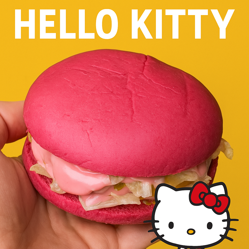 Недавно заехал перекусить во «Вкусно — и точка» после поездки и заметил яркую новинку в меню — бургер из коллаборации с Hello Kitty. Не смог пройти мимо. Поделюсь впечатлениями. Первое, что бросается в глаза — это яркая коробка, стилизованная под комикс с героями вселенной Hello Kitty. Оформление действительно приятное: красивые цвета, интересный шрифт, нестандартная подача. Уже на этом этапе ощущается, что бургер — не про вкус, а про эмоции и вау-эффект. Открывая коробку, видим розовую булочку — выглядит необычно и даже немного мило. Такой цвет достигается за счёт натурального красителя (да, есть мнение, что это кармин, который получают из определённых видов насекомых, но на вкус это не влияет). Состав: По калорийности — ориентировочно около 420 ккал. Если коротко — вкусно, но не must-have.