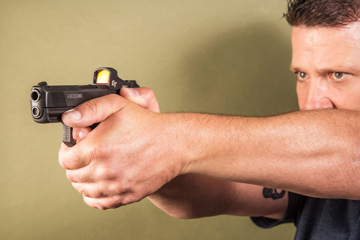 - Физика Победы: Согнутые локти превращают руки в демпфирующую систему. Часть энергии отдачи гасится мышцами предплечий и плеч, а не преобразуется в подброс ствола. Пистолет отходит назад с минимальным подъемом, быстрее возвращаясь на линию прицеливания. Плюс: В этом положении вы можете приложить максимальное боковое давление неведущей рукой, завершая наш "круг силы".