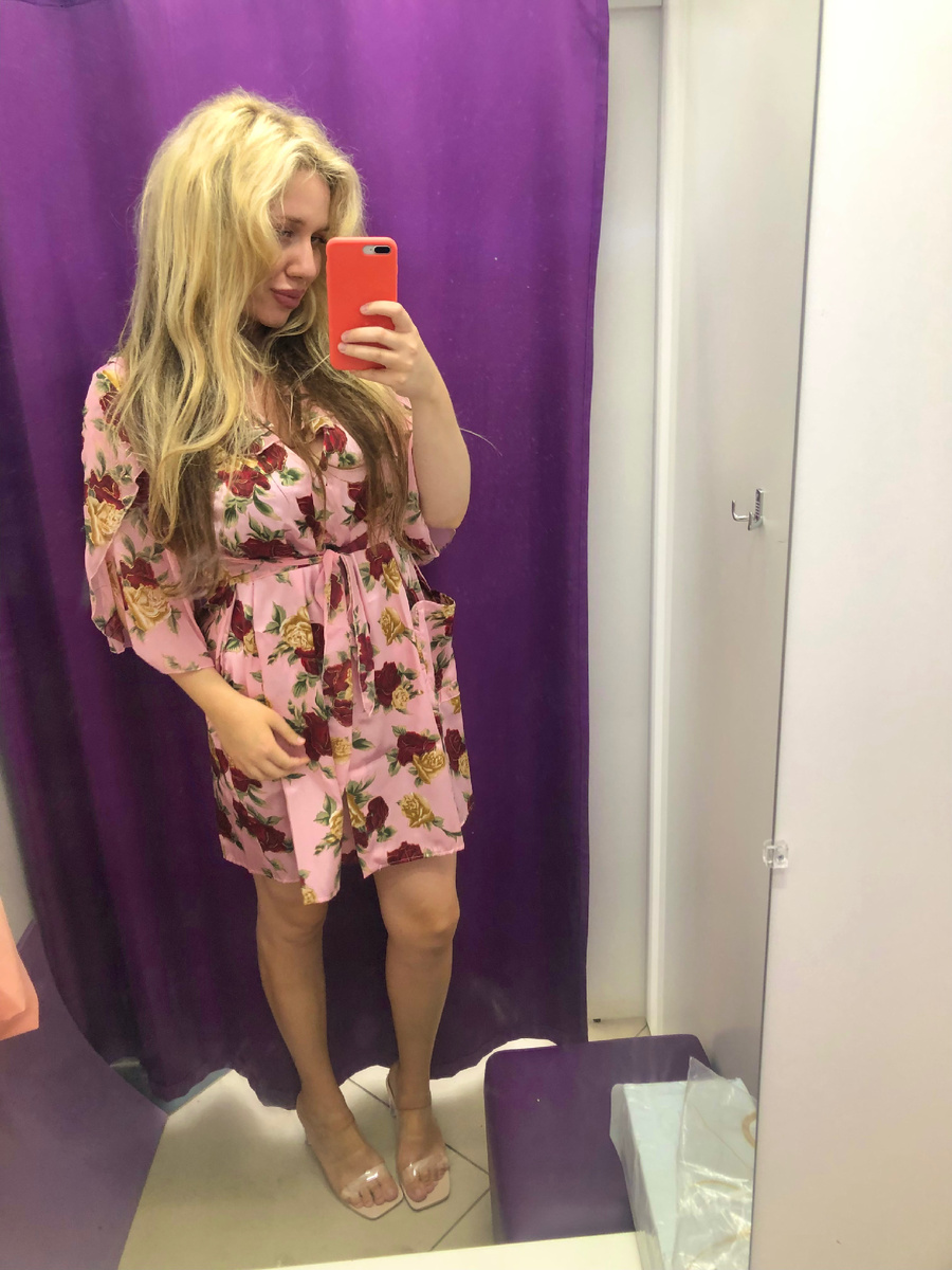 Решила я, значит, поискать какой-нибудь новый формат домашних халатиков и наткнулась на бренд Cleo. Дизайны у моделей нетривиальные: оборочки, неожиданные сочетания материалов. Планирую приобрести множество позиций данного производителя. Я немного сомневалась, когда делала первый большой заказ, поскольку никогда не знаешь, понравятся ли ткани, будешь ли ощущать себя комфортно в вещах нового бренда. Оказалось, что зря: первая закупка мне пришлась по вкусу. Сегодня планирую показать одну примерку халатика от Cleo, которую успела снять на пункте выдачи. Заказала 48 размер, и он оказался мне слишком свободным. Я всё равно его забрала. Но при следующей покупке буду стараться заказывать размеры поменьше. Они не всегда бывают в наличии, поэтому, вероятно, придется подождать. Можно просто добавить нужный размер в лист ожидания и включить уведомления, чтобы при добавлении вещи в ассортимент сразу же зайти в приложение и заказать. Фасон у халатика полуприлегающий. Очень понравилось, что пояс