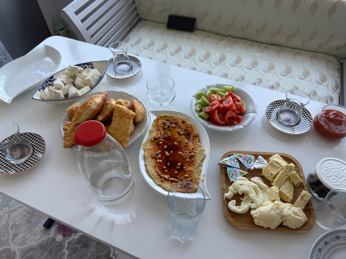 Второй день в Бурсе начался с позднего турецкого завтрака. За стол сели только в полудню…свекровь пожарила деткам «пищи» - что-то вроде пончиков без начинки, муж сделал менемен из заготовок, поставили на стол сыр, помидоры, огурцы, оливки - все по классике. В общем кое-как сели за стол😆. Наблюдала, как золовка еле скребет вилкой по почти пустой тарелке. Наблюдаю, потому что это первый человек в моем окружении, который похудел на тех самых уколах. И мне конечно же интересно, как это все выглядит… Первая часть дня прошла спокойно, неспеша за разговорами под чай и кофе. В общем-то мило и уютно. Но потом внезапно начался какой-то апокалипсис из людей. Сначала пришли наши «немцы». Племянница зашла в дом, неся ОГРОМНЫЕ ПАКЕТЫ с подарками в руках. Я даже опешила от неожиданности. Г. подарила свекрови какие-то супер крутые кастрюли из Караджи, мне, Бурджу (моей золовке) и мужу ДУХИ, а детям красивые платья и целые пакеты со всякой приятной мелочью вроде заколочек, геля для душа и так далее
