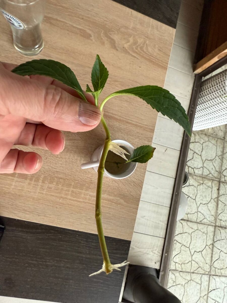 Гибридную гортензию «Сбежавшая невеста» вполне возможно размножать зелеными верхушечными черенками. Случайно сломанный и поставленный в кружку с водой черенок дала корешки за две недели без всяких укоренителей и стимуляторов. Может и с метельчатыми стоит поэкспериментировать?