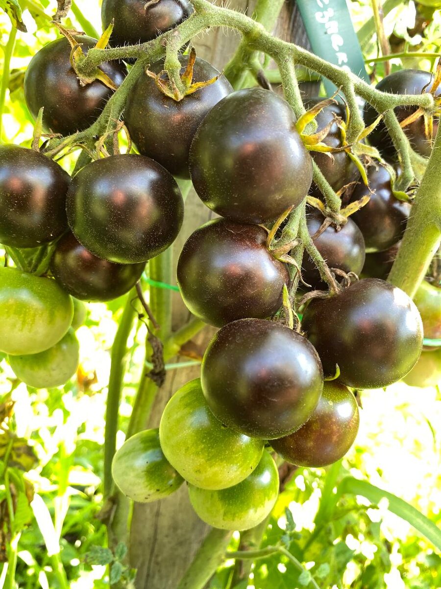 Не перестаю приятно удивляться сортом Незнакомка. Плоды свисают как гроздья «огромной черной смородины». Мякоть у плодов удивительного черничного цвета. Вкус сладкий, как конфетка.