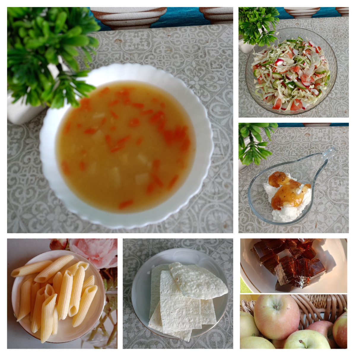 Всем привет! С Вами Татьяна, пенсионерка. Мне 74 года, рост 151 см, вес 55,1 кг. 27.02.23 мой вес был 82 кг. В процессе своего похудения за 2 года сбросила 25 кг лишнего веса. Цель - поддерживать нормальный вес 55-56 кг, так как при моем росте 151 см 57 кг для меня избыточный вес. *** Для меня пример балерина Майя Плисецкая, с её почти монашеским рационом питания и лозунгом - не жрать! А уж у неё то физическая активность зашкаливала и тем не менее она ела очень мало. С моими 1-2 тыс. шагами и лежанием на диване питание на 1200 ккал это прямой путь к ожирению. Не хочу быть толстой и не буду много есть! *** Факт 571 ккал Норма 500 ккал Фактическое БЖУ 21/22/57 Рекомендуемое БЖУ 25/25/50 *** •Утром натощак стакан воды с просфорой •Завтрак - салат из белокочанной капусты, огурца, редиса и помидора с толчёным грецким орехом, заправленный оливковым маслом; макароны вместо хлеба; творог из замороженного кефира с джемом. •Обед - гороховый суп; сушеный лав