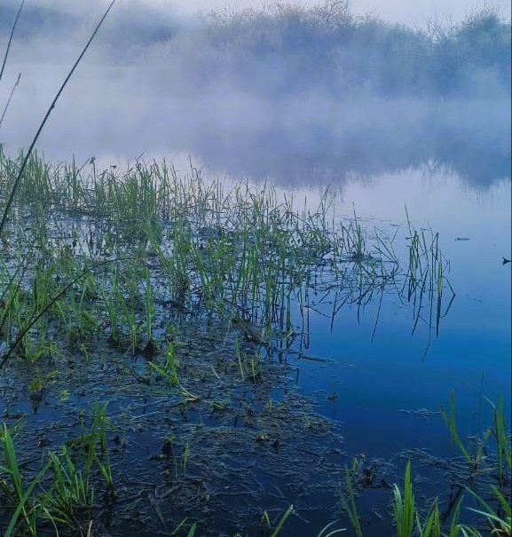Так и день прошел, вечер подкрался, время рыбалки. А озеро ближайшее от нас в 500 метрах через луг. Собрались и пошли. Пока лодку надули, пока на берегу расположились, совсем темнеть начало. Озеро, заросшее травой по берегам, а по центру вода. Как только темнеть начало трава как будто начала перемещаться к центру озера. Но в начале мы на это внимания особо не обратили. Муж с другом брата Виктором поплыли рыбачить. Через какое- то время слышу всплеск и возглас Сергея, мне с берега показалось, что он рукой пытается рыбу сорвавшуюся поймать. И почти сразу они вернулись к нам на берег, и он рассказал. Прямо рядом с ними, возле травы стоял щуренок. Они его в начале поймать пытались на червя и на блесну, а он лишь поглядывал на них, клевать не собирался, но не уплывал. Так и стоял на одном месте. Потом рыбаки не выдержали и уже начали развлекаться, пытались грузилом ему по голове попасть, хотя бы отогнать, а он продолжал на них поглядывать, только у виска плавником не крутил, отодвигаясь от целящихся в него предметов. Тут муж наклонился и сунул руку в воду, хотел щуренка схватить, а навстречу его руке из травы резко кинулось, что- то большое и черное, он еле руку одернуть успел. Под впечатлением и причалили к берегу. В лодку вместо мужа сел его брат Андрей и они с Виктором поплыли к центру озера. Ему тоже интересно стало кто там брату руку откусить пытался. Было уже темно, были слышны всплески, а их все не было и не было. Потом они все же причалили и первое, что сказал Андрей, буквально повторяя слова Тикшаны, а озеро то живое. Они отплыли и заблудились. Трава ночью двигается по озеру, создавая причудливые лабиринты. Найти место с щуренком они так и не смогли и плутали среди островков травы, хотя берег виден, да и у нас на берегу был костер. Вроде к берегу плывут, а оказываются далеко от берега и в зарослях. Там, где только что была открытая вода, вдруг трава выше головы, а вода уже в другом месте. Но все обошлось, кошкам рыбу привезли, сами вернулись, так день и прошел.