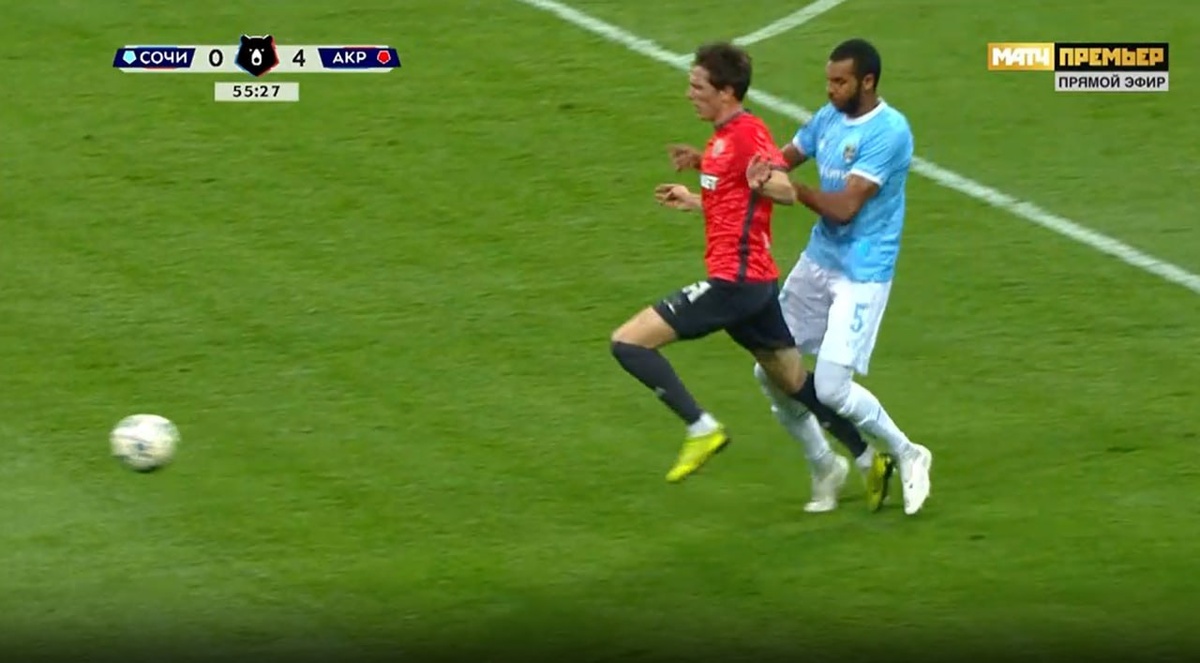 Правильное решение принимает Целовальников и назначает 11-м удар в ворота команды Сочи.