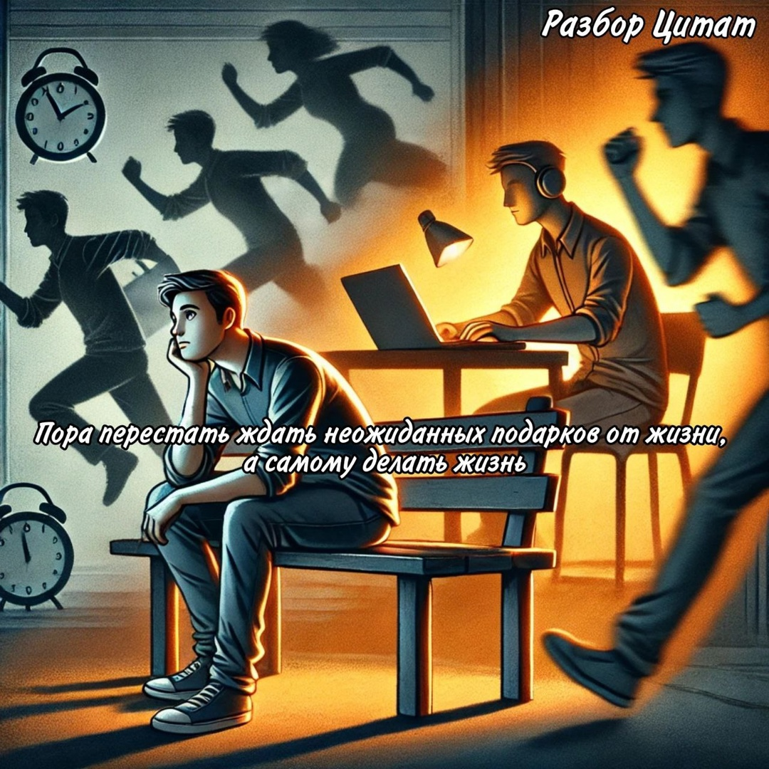 📌 "Не бойся быть автором своей жизни. Просто начни писать первую строчку." Цитата противопоставляет пассивное ожидание и активное созидание.