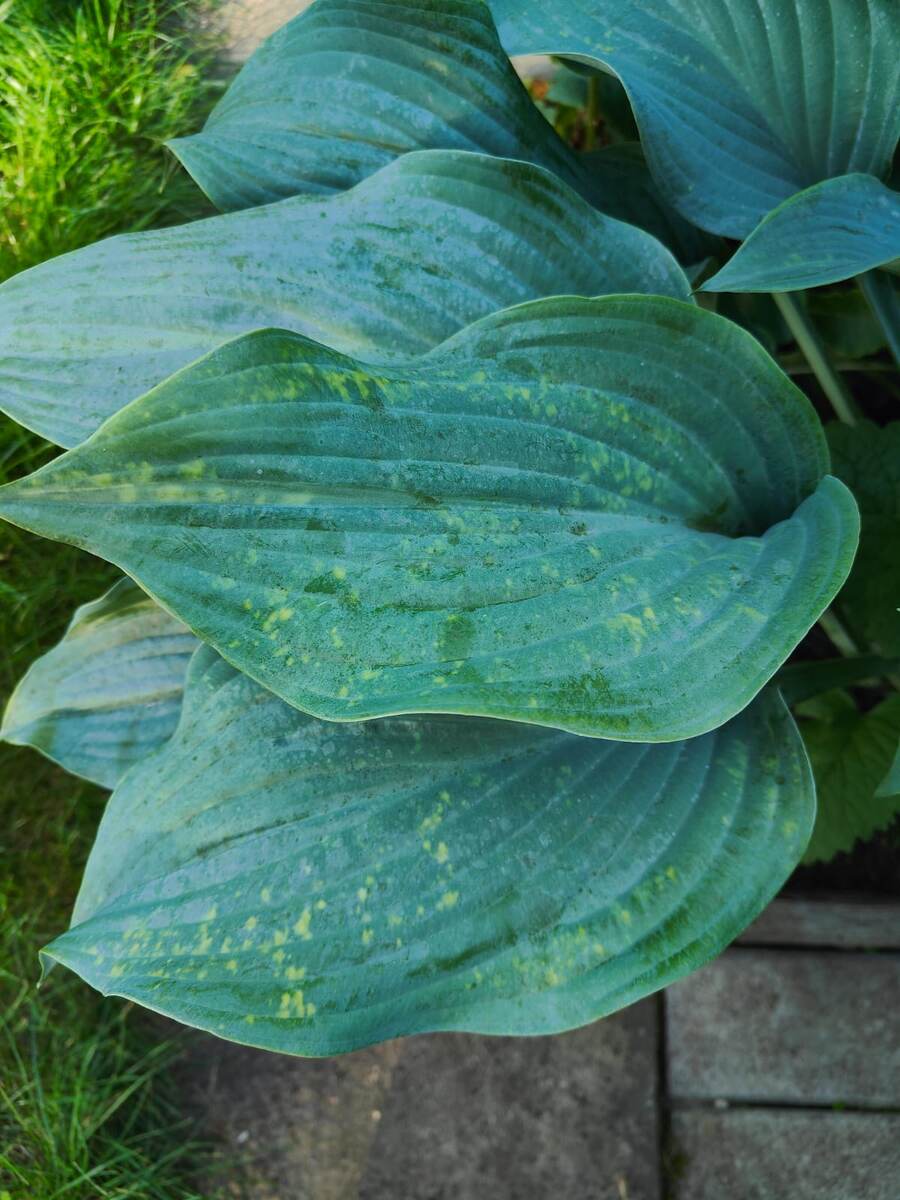 В прошлом и позапрошлом году у меня заболели одна за другой две голубых хосты. У них появились странные пятна на листьях, и сами листья стали несколько деформированными. Что это за болезнь или вредитель, я установить не смогла. Наиболее вероятными вариантами были вирус или нематода. Вирус, как известно, не лечится, а от нематоды избавиться почти невозможно. Пыталась обрабатывать хосты разными препаратами: и фунгицидами, и инсектицидами, и акарицидами, но улучшений не наступило, и я их выбросила. Лучше лишиться двух экземпляров, чем всей коллекции из двадцати пяти сортов, решила я. В этом году непонятности с пятнами на листьях продолжились. Недавно на двух других голубых хостах появились жёлтые пятна на листьях. На одном кусте я сразу оборвала все три подозрительных листа. Пока больше нет. На Кросса Регал листьев с пятнами значительно больше. Если все их оборвать, останется полкуста. Опять обрабатываю. Выбросить этот прекрасный сорт рука не поднимается, ведь замены ему нет. Сегодня об