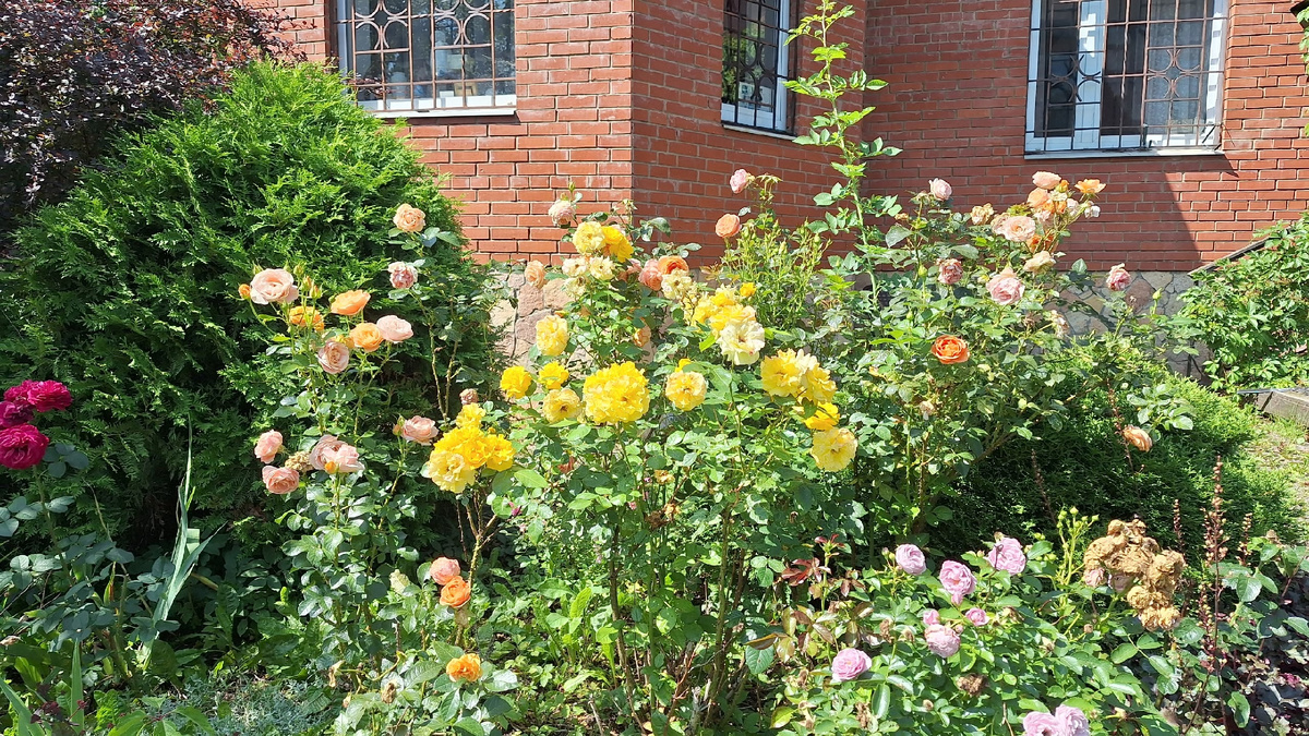 В общем, в этот раз я просто обрезала розы и оценила масштаб заброшенности. Розарий почти не пострадал. У флорибунд все-таки отличные шансы в нашем регионе. После обрезки отцветшего даже есть, что показать: