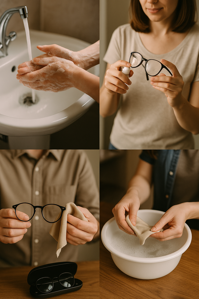 - Мойте руки 🧼 — перед чисткой линз руки должны быть чистыми и без жира.