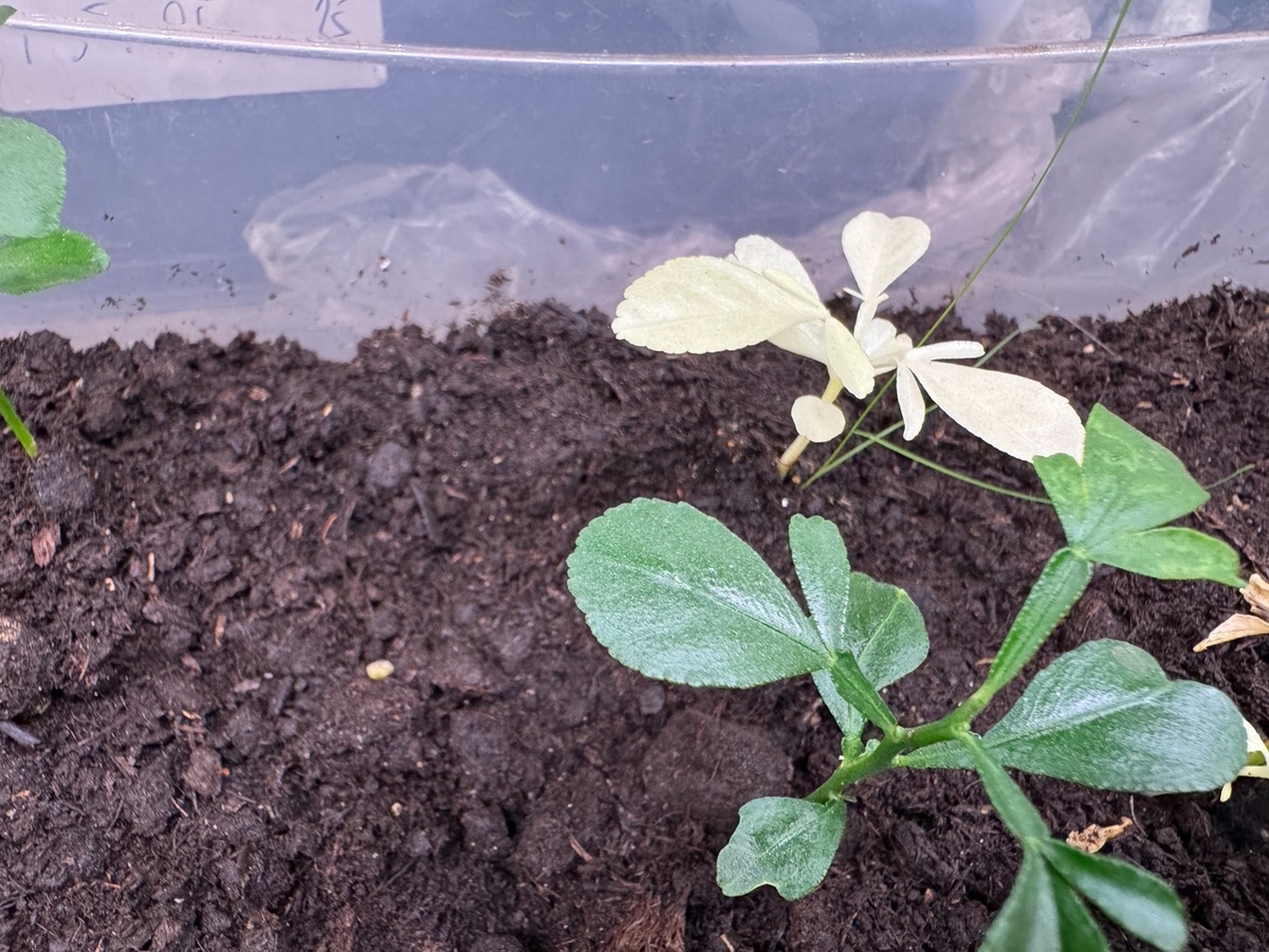 - Citrumelo и Troyer – гибриды (Poncirus trifoliata × Citrus sinensis), поэтому их семена могут давать пестрые или белые проростки из-за химерности тканей.