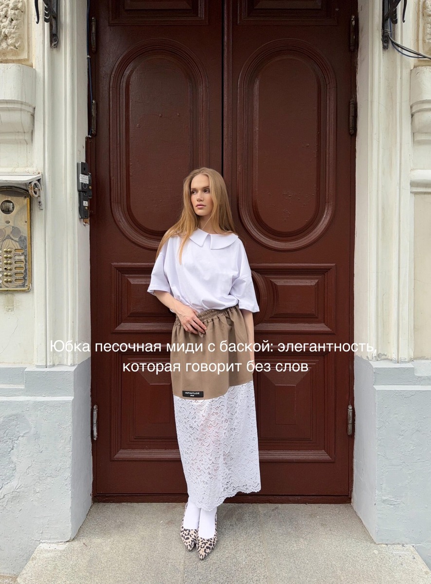 В эпоху, когда мода перестала быть просто одеждой и стала формой самовыражения, каждая деталь имеет значение. Юбка песочная миди с баской — это как аккуратный акцент в речи, который делает фразу вдвое сильнее. Ничего кричащего. Всё — про точность, про сдержанную эстетику и про внутреннюю опору. Этот фасон — как уверенное «я здесь» без необходимости объяснять, зачем. Баска — это декоративная деталь в виде широкой оборки, пришитой по линии талии или чуть ниже. Она не просто украшение. Баска зрительно корректирует фигуру, делая её более сбалансированной: подчеркивает талию, добавляет объём в области бёдер и формирует женственный силуэт. Когда на миди-длину добавляется баска — это уже не просто юбка, а полноценный образ. Это история о том, как даже лаконичная вещь может стать центром внимания. В ней сочетается структурность и мягкость, классика и современный подход к деталям. Песочный — не просто бежевый, а более тёплый, живой оттенок, в котором есть и свет солнца, и тепло кожи. Он универ