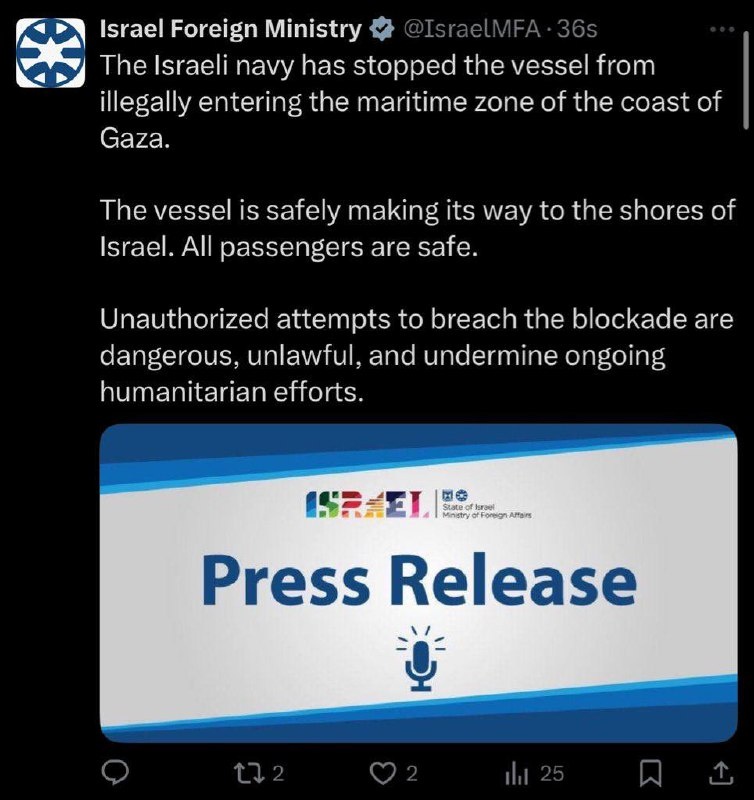 Israel SEIZES Gaza aid ship Handala — Foreign Ministry