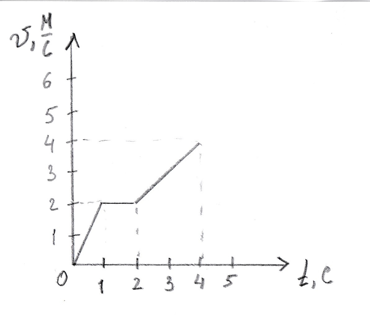 Таким образом в интервале времени от 0 до 2 с автомобиль прошел путь: 1м+2м=3м