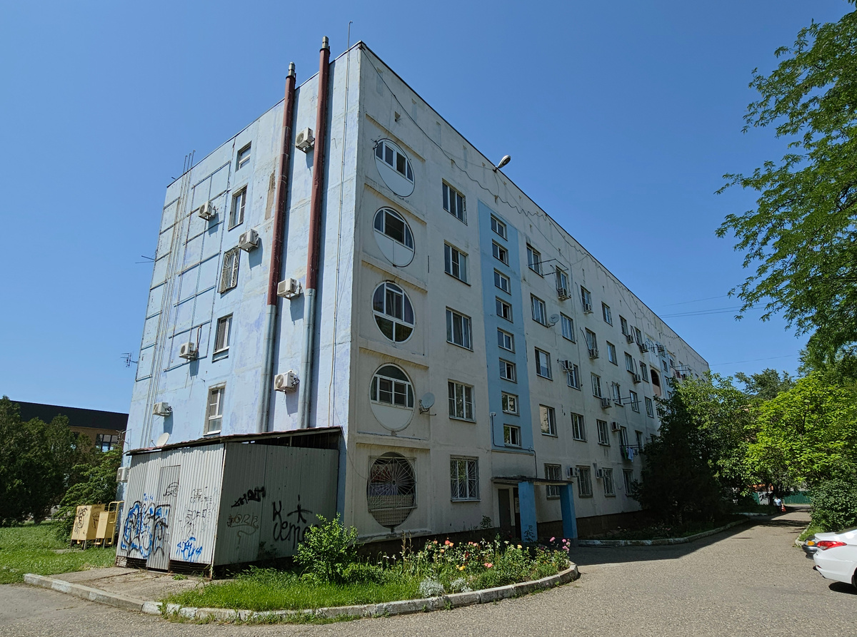 Пока писал статью, у меня возник резонный вопрос: "Почему в посёлке Энергетик, где располагается главное диспетчерское управление всеми энергосетями Юга РФ/СССР не нашлось ни одного дома из нашей серии?" При этом в пгт. Иноземцево, где нет ровном счётом ничего, возвели несколько общаг? Странно, очень странно. Ладно, идём дальше.