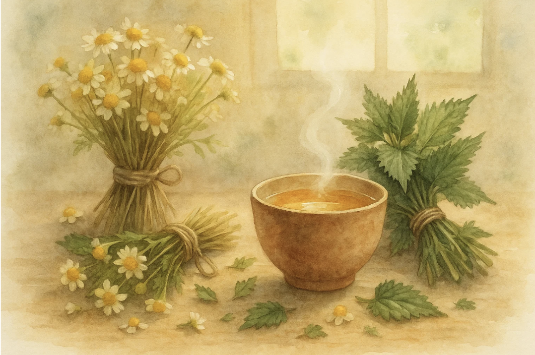 Зуд кожи головы и жирные волосы – проблемы, знакомые многим. Зуд может возникать из-за раздражения, сухости, реакции на средства для волос или небольшого воспаления. Жирные волосы появляются, когда сальные железы работают слишком активно. Из-за этого корни волос слипаются уже на следующий день после мытья, волосы выглядят неопрятно, иногда появляется перхоть. Эти проблемы мешают чувствовать себя комфортно. Некоторые ищут помощь в натуральных средствах, например, в травяных ополаскиваниях. Этот способ использовали еще наши бабушки. Сила Природы: Почему Ромашка и Крапива? Травяные ополаскивания работают не просто потому, что их давно применяют. В растениях есть полезные вещества, их действие изучают ученые. * Ромашка аптечная: Помогает успокоить кожу. Главные ее компоненты – хамазулен и бисаболол. Они уменьшают воспаление, борются с микробами, снимают красноту и зуд. Ромашка также слегка смягчает кожу, не пересушивая ее. Это полезно для чувствительной кожи головы. * Крапива двудомная