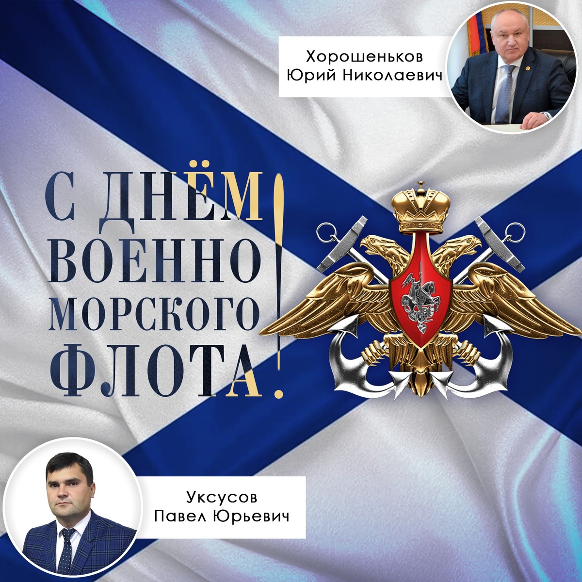 Уважаемые военные моряки и ветераны флота! Примите искренние поздравления с профессиональным праздником – Днем военно-морского флота России! Этот праздник объединяет всех, кто посвятил свою жизнь службе нашей Родине на морских и океанских просторах. Российские военные моряки стали образцом мужества и доблести, истинной верности воинскому долгу, самоотверженности и ответственности за судьбу своей страны. Желаем всем крепкого здоровья, бодрости духа, мира и добра. Счастья и благополучия вам и вашим семьям! Ю.Н. ХОРОШЕНЬКОВ, глава городского округа город Урюпинск . П.Ю. Уксусов, председатель Урюпинской городской думы.