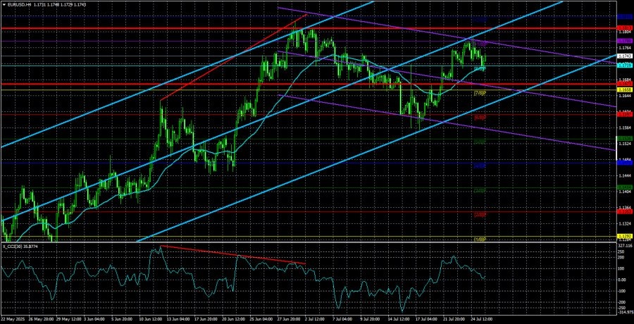 Валютная пара EUR/USD сохраняет на 4-часовом ТФ восходящий настрой. Если британский фунт в последние несколько дней показал довольно сильное падение, то евровалюта – нет и продолжает торговаться выше скользящей средней линии. Поэтому по состоянию на текущий момент сохраняется восходящая тенденция, и ожидать следует только роста. Тем более, что в пятницу цена отскочила от мувинга.