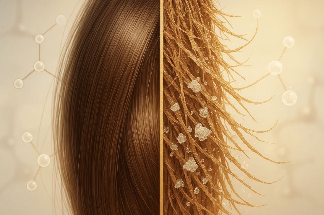 Мы знаем, что лишний сахар вредит фигуре. Но он также влияет на волосы, делая их жесткими и ломкими. Виновник – гликация. Разберемся, как это происходит. Что такое гликация и при чем тут волосы? Гликация – это химическая реакция. Сахар в крови связывается с белками без участия ферментов. Волосы почти полностью состоят из белка кератина. Когда сахара в крови много (из-за частого употребления сладкого), его избыток циркулирует по организму. Он достигает волосяных луковиц и самого стержня волоса. Там сахар взаимодействует с кератином. Так сладости напрямую влияют на структуру волос. Как гликация превращает волосы в "солому"? Связываясь с кератином, сахар запускает цепь реакций. Сахар взаимодействует с кератином волоса, запуская особые процессы. В результате этого образуются Конечные Продукты Гликирования, сокращенно КПГ. Эти соединения сильно влияют на состояние волос. КПГ создают жесткие связи между цепями кератина. Здоровый кератин эластичен, но такие связи лишают его гибкости. Волосы с