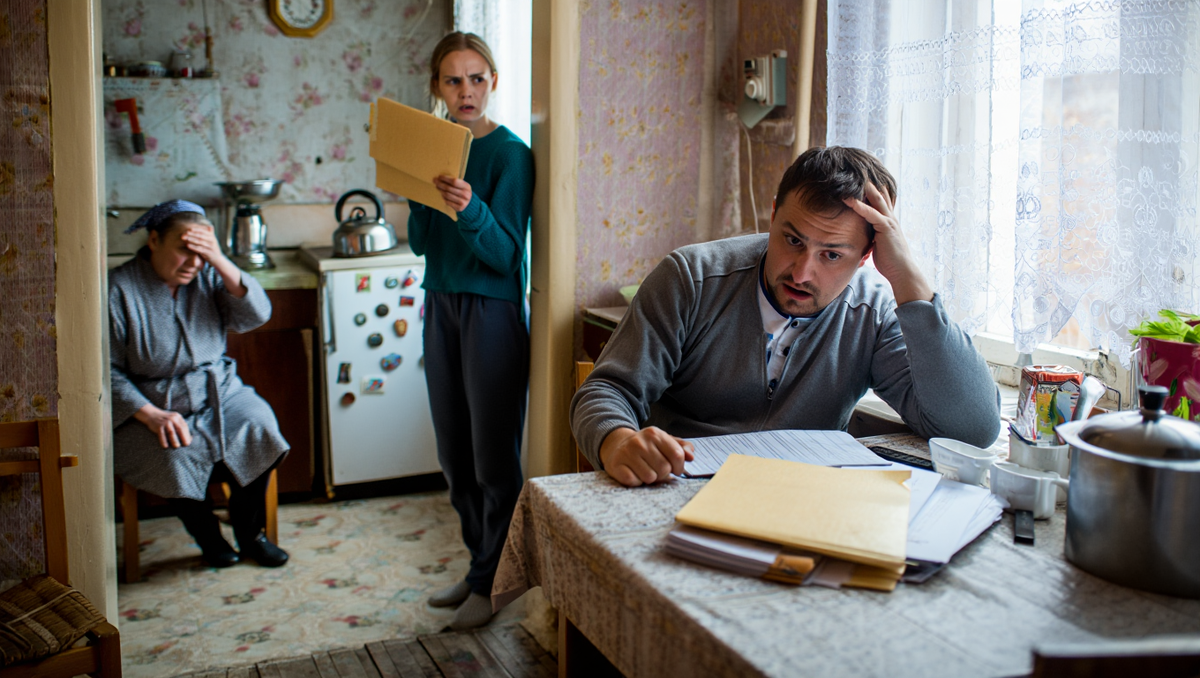 Андрей сидел на кухне и смотрел, как дождь барабанит по окну. Жена Светлана возилась с документами за столом, что-то считала на калькуляторе. Мама читала газету в кресле у телевизора.