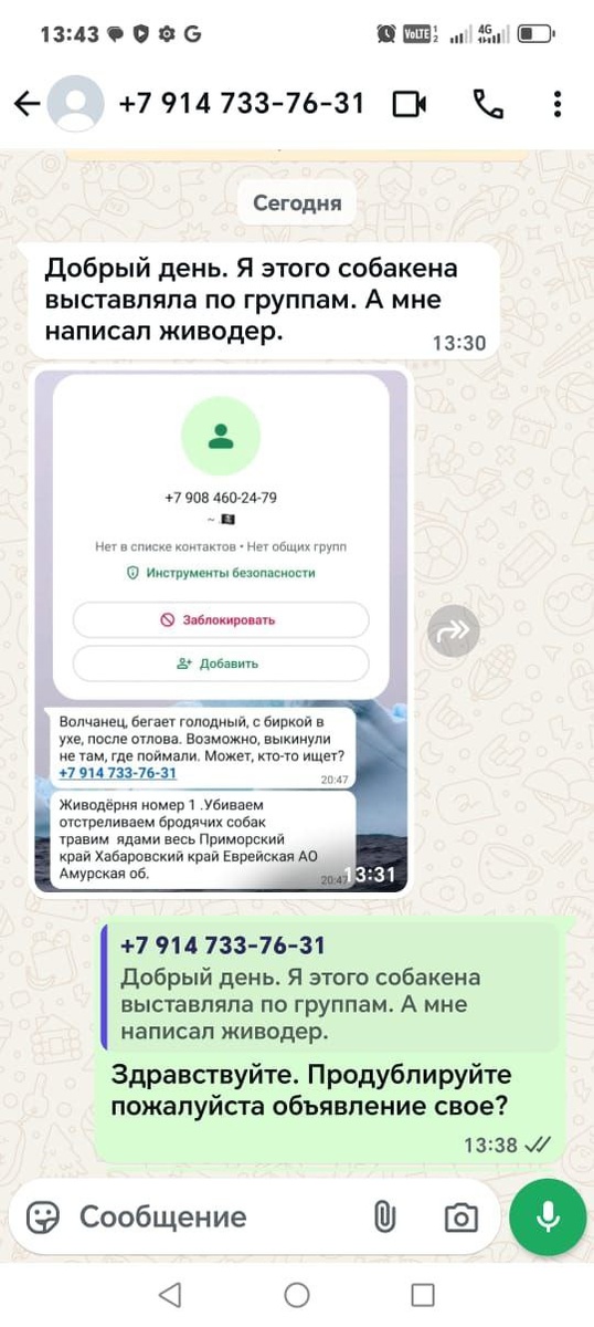 Этот номер в ЧС уже есть 89084602479 надо по всем группам разослать. Животных не давать!