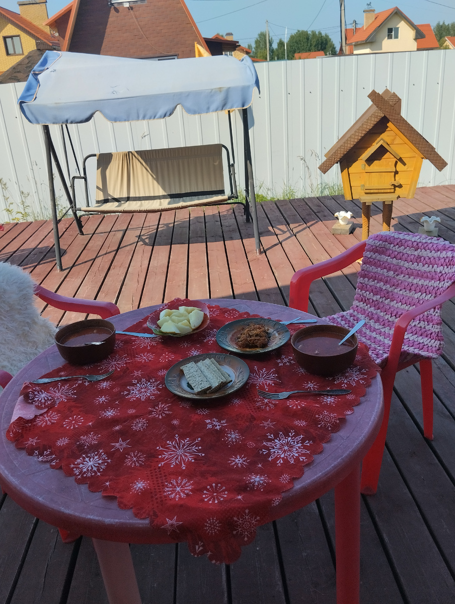 Привет, друзья! Итак,пошла вторая неделя нашего питания под руководством шефа-повара-диетолога ДМ.🤔🤭 Началось все это неделю назад, я писала об этом вот тут=> Результат пока рано подводить, но жить стало легче, жить стало веселее. Я почти не готовлю и совсем не мою посуду. Ну прелесть же. Итак, открываем вторую неделю питания от ДМ. Про то, как мы в субботу вечером ужинали с грилем я уже писала вот тут=> Но в субботу у нас был ещё и обед, про который я пока не рассказывала, исправляюсь. На обед в субботу у нас был суп типа харчо. Варил его ДМ так. Сначала сварил бульон на двух куриных голяшках, потом добавил две столовые ложки риса ( промыл), пару ложек томатной пасты. Варил до готовности риса. За 10 минут до готовности положил в кастрюлю специи из Абхазии, соль, совсем немного сахара, чеснок, перец, а пред подачей очистил мясо от косточек и добавил укроп и кинзу. Получился густой и вкусный суп. С удовольствием поели. Тут я просматривала какой-то свой пост о еде и вот такая ре