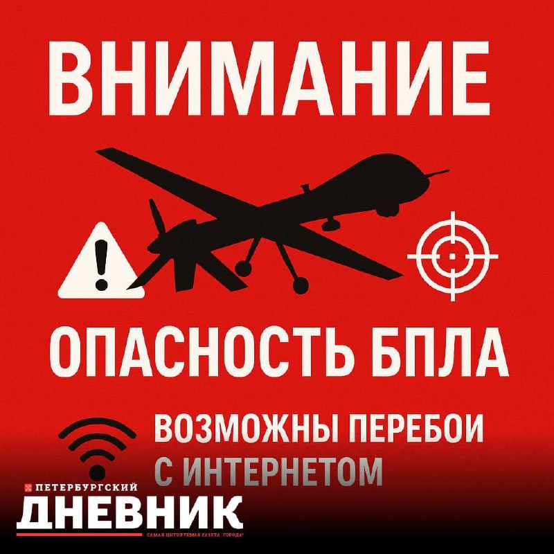 ❗️Внимание, объявлена опасность БПЛА в воздушном пространстве Ленинградской области Возможно частичное понижение сигнала мобильного интернета. Об этом сообщил губернатор региона Александр Дрозденко. Петербургский дневник