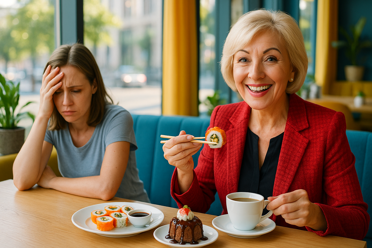 Галина Павловна сидела в кафе, наслаждаясь суши и кофе. Жизнь была прекрасна.