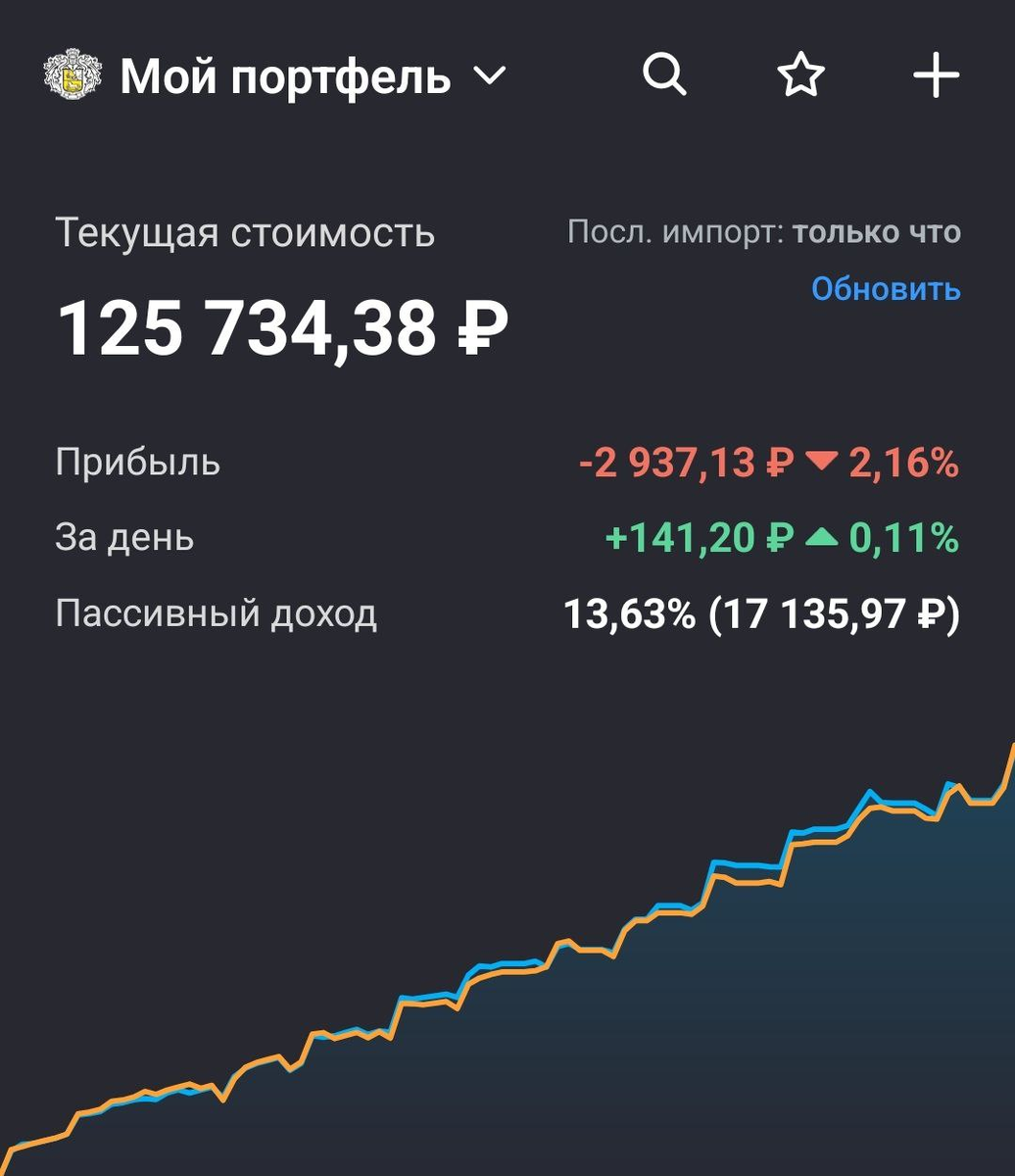 Общий вес портфеля 125 тысяч рублей, инвестировано за 3+ месяца 128 тысяч рублей. В нынешних реалиях — отлично! Дальше, больше =)