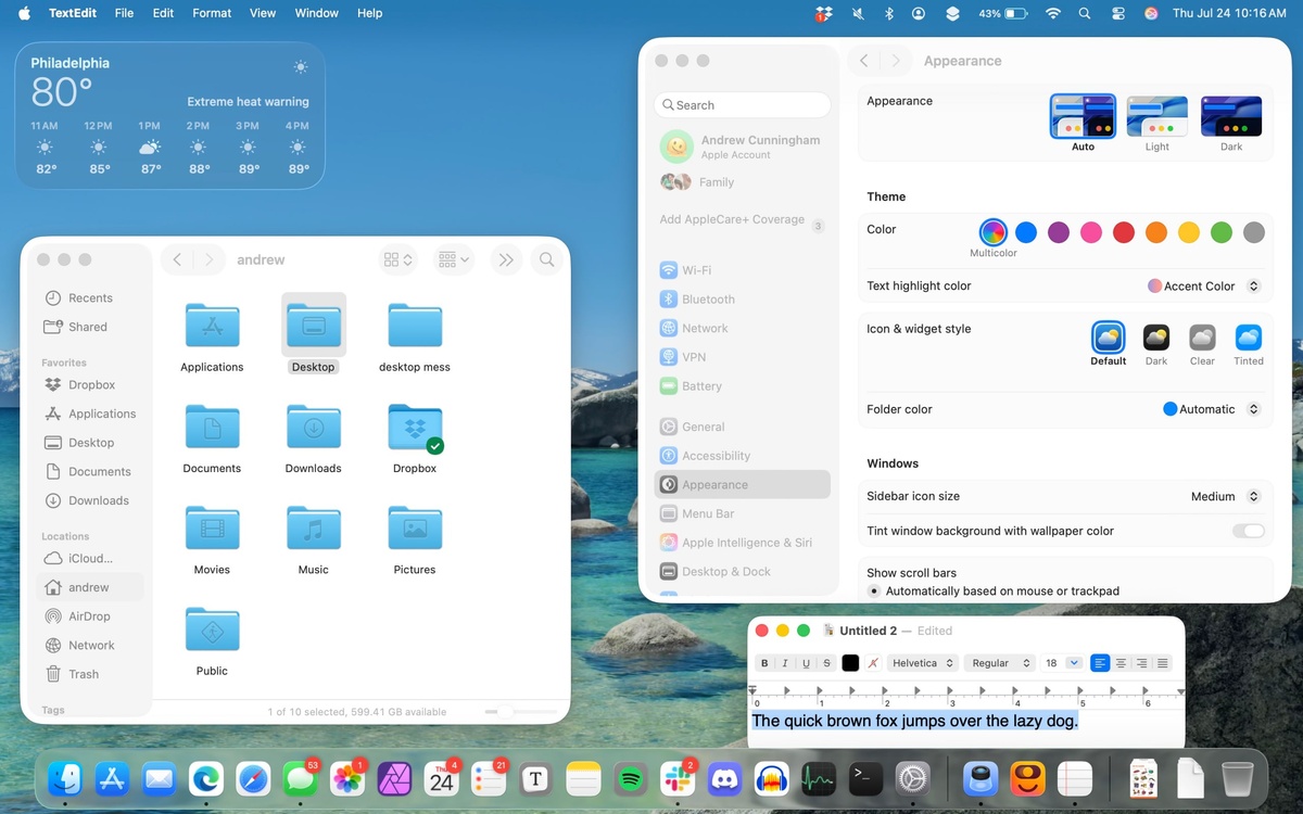 Apple выпустила публичную бета-версию macOS Tahoe и хотя главной новинкой стала эстетика «жидкого стекла», в системе спрятано множество менее заметных, но полезных улучшений. Издание Ars Technica рассказывает о шести таких функциях, которые делают операционную систему Mac еще более гибкой и удобной. Самое впечатляющее нововведение — полная настройка цветов интерфейса. Если раньше macOS предлагала лишь светлую и темную темы с парой дополнительных опций, то Tahoe превращает систему в настоящую радугу возможностей. Теперь можно независимо настраивать цвет окон и приложений, иконок и виджетов (включая прозрачный и тонированный режимы), папок, выделения текста и основной темы системы. Apple даже научила систему автоматически адаптировать старые иконки под новую эстетику — одни получают стеклянный блеск по краям, а особо упрямые помещаются в серые квадратные коробочки для «перевоспитания». В режиме восстановления появился новый Ассистент восстановления устройства — автоматизированный инстр