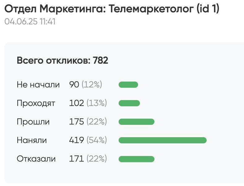 Π½ΠΈΠΊΠΈ ΠΈ ΠΏΡΠΎΠΌΡΡΠ»Π΅Π½Π½ΠΎΡΡΠΈ. π Π§ΡΠΎ ΡΠ΄Π΅Π»Π°Π»ΠΈ ΠΌΡ: β ΠΠΏΡΠ΅Π΄Π΅Π»ΠΈΠ»ΠΈ Π¦Π (Π²Π·ΡΠ»ΠΈ Π½Π΅ΡΠΊΠΎΠ»ΡΠΊΠΎ ΡΠ΅Π³ΠΌΠ΅Π½ΡΠΎΠ² Π² ΠΏΡΠΎΠΈΠ·Π²ΠΎΠ΄ΡΡΠ²Π΅) β ΠΠΎΠ΄Π³ΠΎΡΠΎΠ²ΠΈΠ»ΠΈ Π΄ΠΎΠ»ΠΆΠ½ΠΎΡΡΠ½ΡΡ Π΄Π΅ΠΌΠΎΠ½ΡΡΡΠ°ΡΠΈΡ + Π·Π°ΠΏΡΡΡΠΈΠ»ΠΈ Π²Π°ΠΊΠ°Π½ΡΠΈΡ β ΠΠ°ΡΡΡΠΎΠΈΠ»ΠΈ Π°Π²ΡΠΎΠΌΠ°ΡΠΈΡΠ΅ΡΠΊΡΡ Π²ΠΎΡΠΎΠ½ΠΊΡ Π½Π°ΠΉΠΌΠ° Π² ΠΠΈΡΡΠΈΠΊΡ ΠΈ Π‘ΠΊΠΎΡΠΎΠ·Π²ΠΎΠ½Π΅ β ΠΠΎΠΌΠΎΠ³Π»ΠΈ Ρ Π·Π°ΠΊΡΠΏΠΊΠΎΠΉ Π±Π°Π·Ρ ΠΈ Π½Π°ΡΡΡΠΎΠΉΠΊΠΎΠΉ Π½Π°ΠΉΠΌΠ° β ΠΠΎΠ΄ΠΊΠ»ΡΡΠΈΠ»ΠΈ ΡΡΠ°ΠΏ ΡΡΠ°ΠΆΠΈΡΠΎΠ²ΠΊΠΈ ΠΈ Π°Π΄Π°ΠΏΡΠ°ΡΠΈΠΈ β Π‘ΠΎΠ·Π΄Π°Π»ΠΈ ΡΠΊΡΠΈΠΏΡ ΠΈ ΠΏΡΠΎΠ²Π΅Π»ΠΈ ΠΈΠ½ΡΡΡΡΠΊΡΠ°ΠΆ Π΄Π»Ρ ΠΊΠ°Π½Π΄ΠΈΠ΄Π°ΡΠΎΠ² π Π Π΅Π·ΡΠ»ΡΡΠ°ΡΡ: β ΠΠ΅Π½Ρ 1: 30+ ΠΎΡΠΊΠ»ΠΈΠΊΠΎΠ² β ΠΠ΅Π½Ρ 2: 70+ β ΠΠ° 3β4 Π½Π΅Π΄Π΅Π»ΠΈ: 400β500 ΠΎΡΠΊΠ»ΠΈΠΊΠΎΠ² β ΠΡΠΎΡΠ»ΠΈ ΠΠ΅ΠΌΠΎΠ½ΡΡΡΠ°ΡΠΈΠΈ Π΄ΠΎΠ»ΠΆΠ½ΠΎΡΡΠΈ Π½Π° 100%: 100+ ΠΊΠ°Π½Π΄ΠΈΠ΄Π°ΡΠΎΠ² β ΠΠ½Π»Π°ΠΉΠ½-Π³ΡΡΠΏΠΏΠΎΠ²ΠΎΠ΅ ΡΠΎΠ±Π΅ΡΠ΅Π΄ΠΎΠ²Π°Π½ΠΈΠ΅: βββ ΠΡΠΈΠ³Π»Π°ΡΠ΅Π½ΠΎ: 38 βββ ΠΡΠΈΡΠ»ΠΎ: 26 βββ Π£ΡΠ»ΠΎ ΠΏΠΎΡΠ»Π΅ ΡΠ±ΠΎΠ΅Π²: