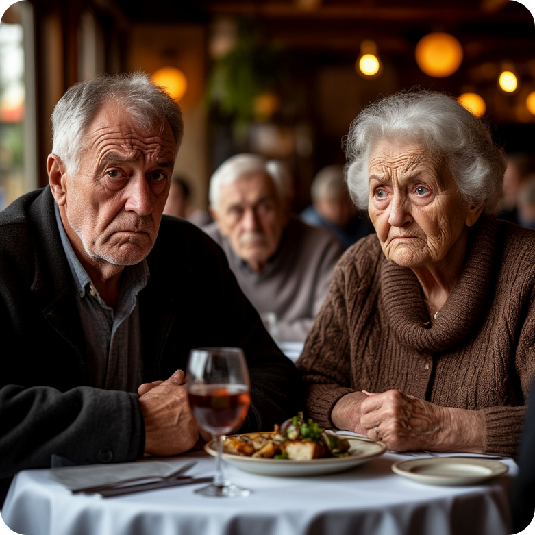 Валерий Степанович уткнулся взглядом в свою тарелку с нетронутым салатом, его плечи были сгорблены, лицо выражало жалкую беспомощность.