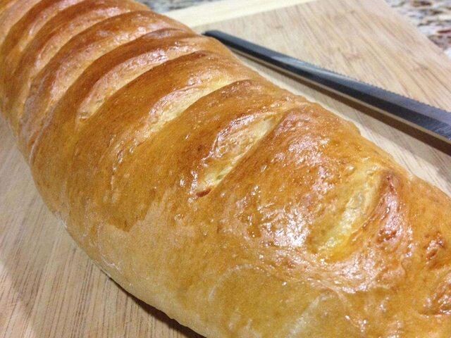 Французские багеты Прекрасно едятся свежими из духовки. Используются для приготовления сэндвичей и т.д. ⌛ Подготовка: 15 мин. ⏰ Приготовление: 1 час. 50 мин. 🍴 Количество: 2 багета Ингредиенты ✅ 1 стакан воды ✅ 2 ½ стакана хлебной муки ✅ 1 столовая ложка белого сахара ✅ 1 чайная ложка соли ✅ 1 ½ чайной ложки дрожжей для хлебопечки ✅ 1 яичный желток ✅ 1 столовая ложка воды Инструкция приготовления 1. Поместите 1 стакан воды, муку, сахар, соль и дрожжи в кастрюлю хлебопечки в порядке, рекомендованном производителем. Выберите цикл "Тесто" и нажмите "Старт" 2. После завершения цикла переложите тесто в смазанную жиром чашу, поворачивая, чтобы оно покрыло все стороны. Накройте и оставьте подниматься в теплом месте примерно на 30 минут или до увеличения в объеме в два раза. Тесто готово, если при прикосновении остается углубление. 3. Обмять тесто. На слегка посыпанной мукой поверхности раскатать в прямоугольник размером 16х30 см. Разрезать тесто пополам, чтобы получилось два прямоугол