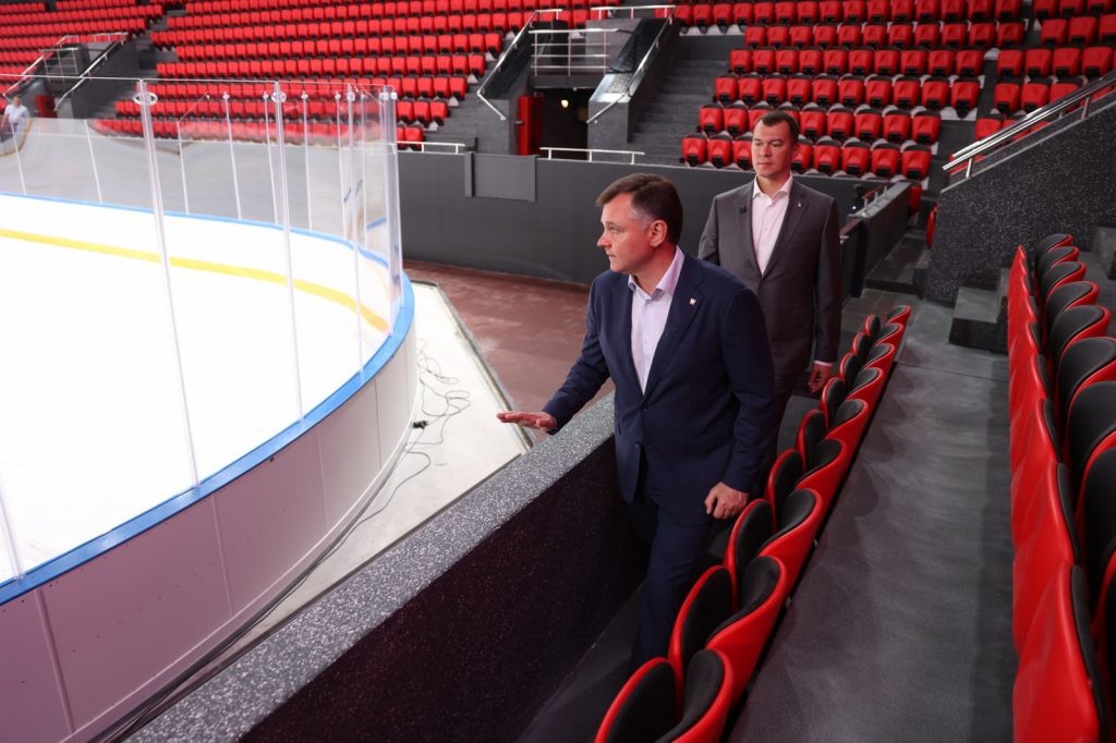 Михаил Дегтярев и Юрий Слюсарь посетили Дворец спорта в Ростове, где проходит реконструкция
