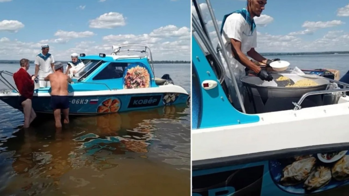 На самарском пляже прямо с катера раздают узбекский плов