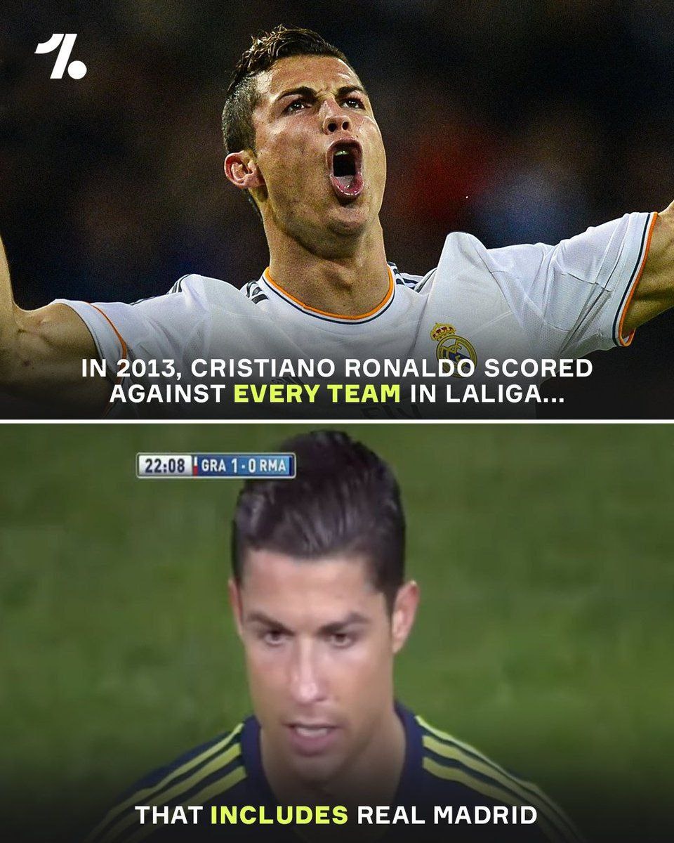 🇪🇸 😁 В 2013 году Роналду добился невероятного – забил в ворота каждой команды Ла Лиги, включая Мадрид: автогол в матче с Гранадой