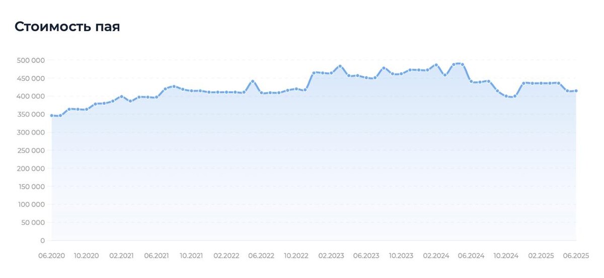 ⚡️ Как менялась цена пая фонда «А12» на вторичном рынке Фонд «Активо двенадцать» начал работу в середине 2020 года. 🔸 На первичном размещении пай стоил ~346 тыс. ₽. 🔸 Весной 2024 г. было зафиксировано пиковое значение — 487 тыс. ₽ за пай, что на 41% выше стартовой цены. 🔸 По итогам июня 2025 г. цена пая составляет ~414 тыс. ₽, что на 18% выше стартовой цены. Как меняется цена паев всех фондов линейки «Активо», смотрите в личном кабинете в микросервисе «Дельта». #A12