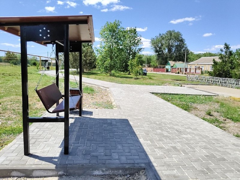 В рамках проекта выполнены работы по укладке тротуарной плитки с асфальтобетонным покрытием; а также установке качелей и урн.