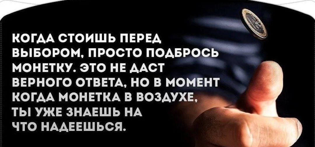 Если сомневаешься в решении, подбрось монетку. Если выбор не понравился, то ты уже решил