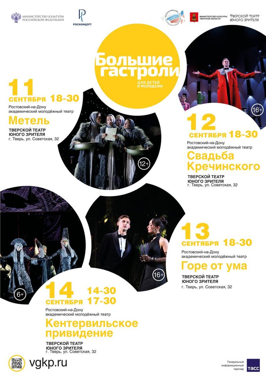 ⭐️Молодежный принимает участие в проекте «Большие гастроли»! В этом году в сентябре состоятся обменные гастроли с Тверским театром юного зрителя в направлении "Для детей и молодежи"🤩 🎭 "Чайка" 🗓 17 сентября в 19:00, Большая сцена, билеты: vk.cc/cN090p 🎭 "Мёртвые души" 🗓 18 сентября в 19:00, Большая сцена, билеты: vk.cc/cN09w9 🎭 "Барышня-крестьянка" 🗓 19 сентября в 19:00, Большая сцена, билеты: vk.cc/cN09Pb 🎭 "Красавица и чудовище" 🗓 20 сентября в 12:00, Большая сцена, билеты: vk.cc/cN0aez 🗓 20 сентября в 15:00, Большая сцена, билеты: vk.cc/cN0atY 🫠 Детские мероприятия Ростов-на-Дону. Я местный!