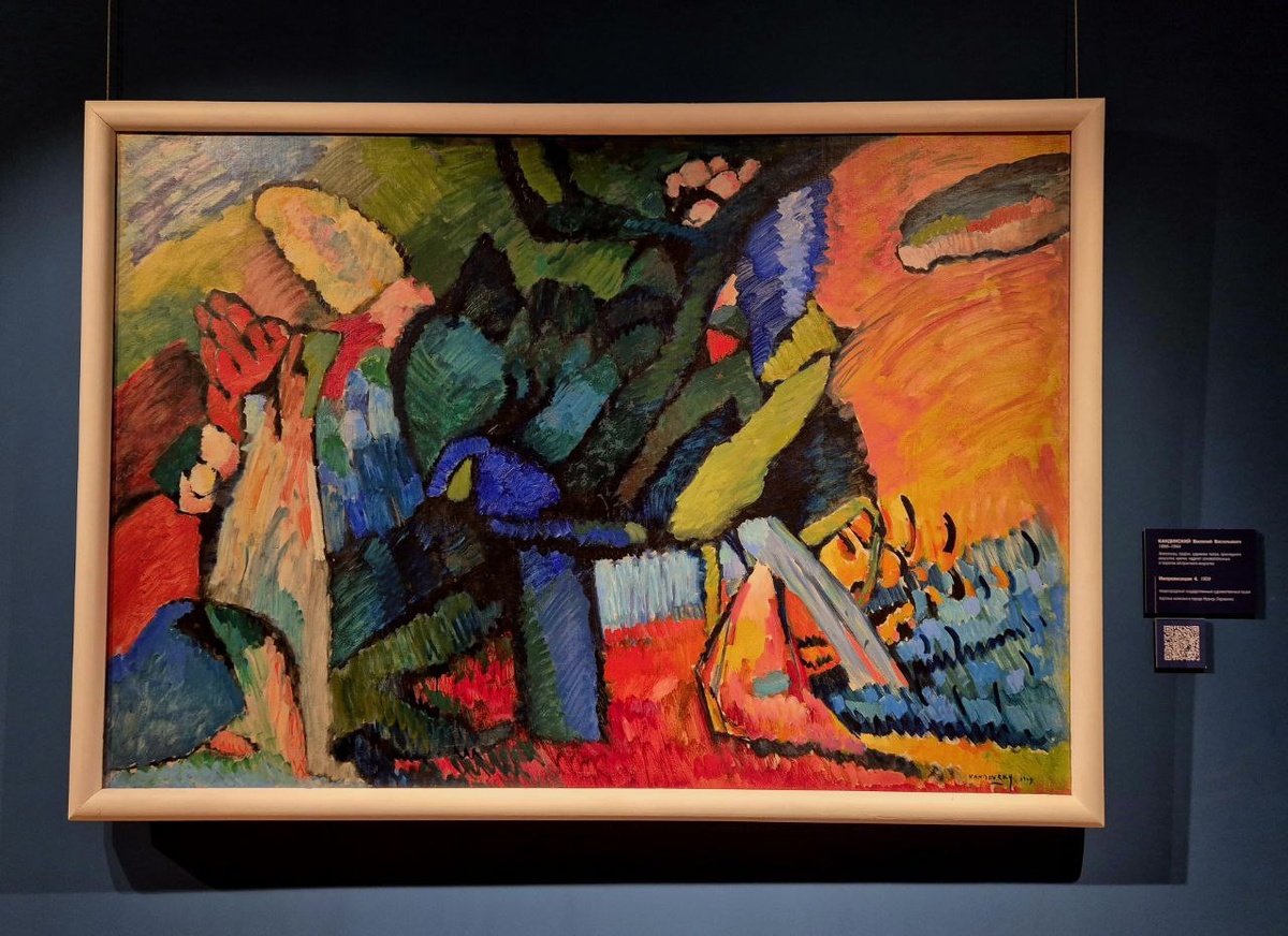 Итак, настоящая картина — это вторая из четырёх представленных: «Импровизация 4», которую Василий Васильевич Кандинский написал в 1909 году в немецком городе Мурнау. Именно тогда в Германии окончательно сформировалось стремление художника идти путем беспредметной живописи, чтобы воплотить истинное призвание искусства — совершенствовать душу человека.