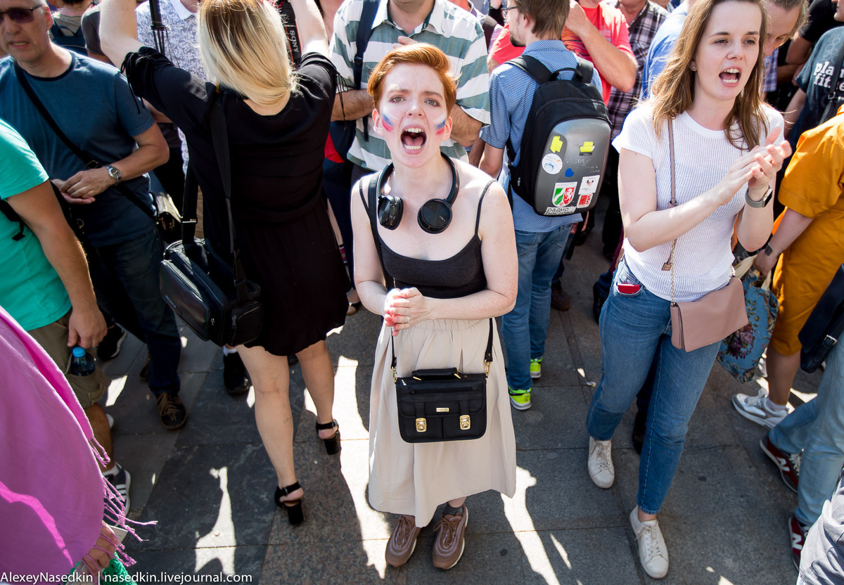 Ещё минуту назад эта хрупкая барышня наивно спросила у меня: "А что здесь вообще происходит?". Понято было, что она здесь совершенно случайно. И вот её уже волокут.